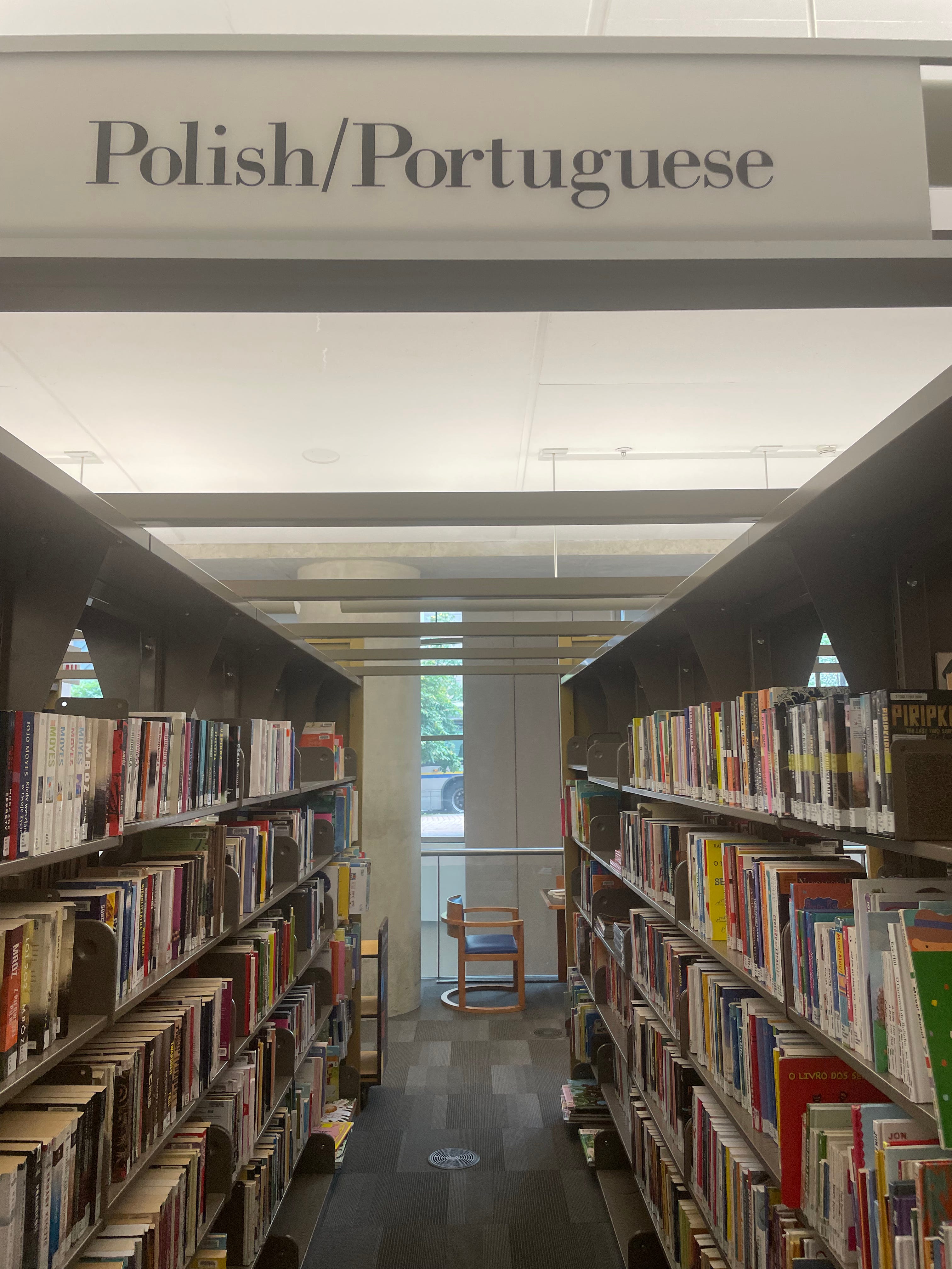 Depois, fui andando até a biblioteca pública da cidade. Eu frequento bastante as bibliotecas aqui de Delta, tanto a de Ladner quanto a de Tsawwassen, mas majoritariamente por causa da Maria. Sempre pegamos livros para ela e lemos alguns por lá. Dessa vez, sozinha, pude desbravar a maior biblioteca da cidade e fiquei feliz em ver uma seção inteira de livros de em português. A curadoria era a mais variada possível, tinha de Paulo Gustavo a José Saramago. Autores brasileiros contemporâneos, porém, nada. A maioria dos títulos eram best-sellers americanos traduzidos. Ainda assim, fiquei feliz.